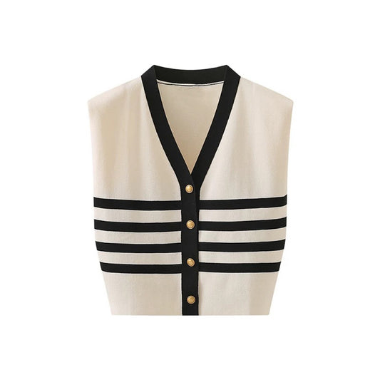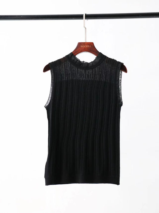 Gold Button Sleeveless Knit Top BT53320