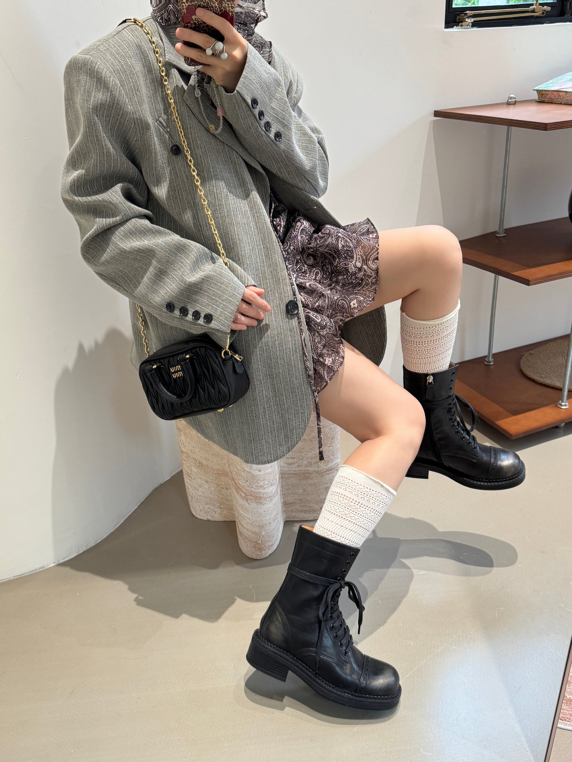 โข Vintage military lace-upย
